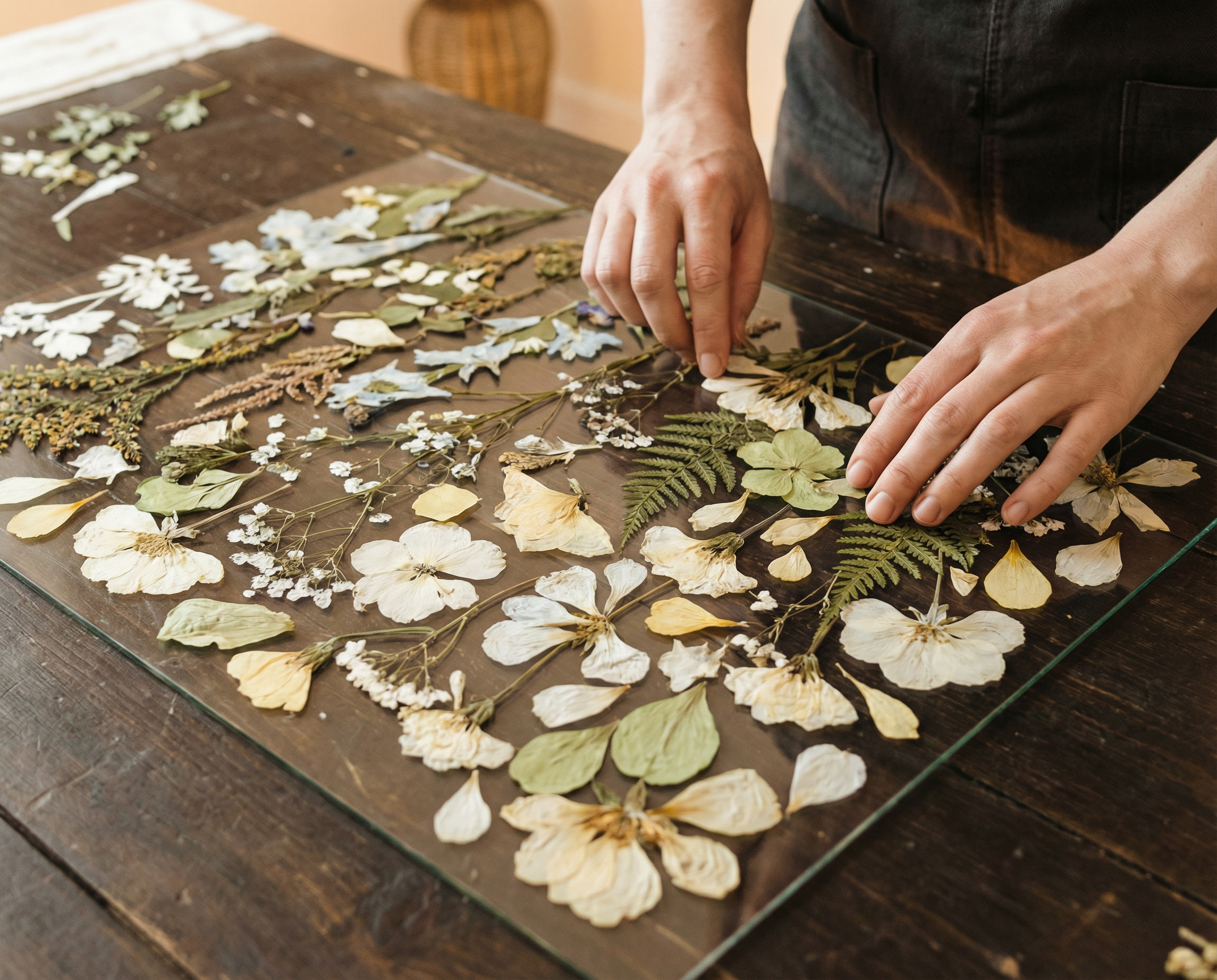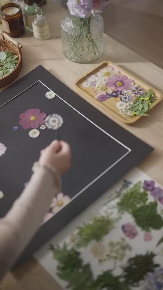 Once your order is confirmed, we begin pressing and preparing flowers and plant leaves specifically for your artwork.