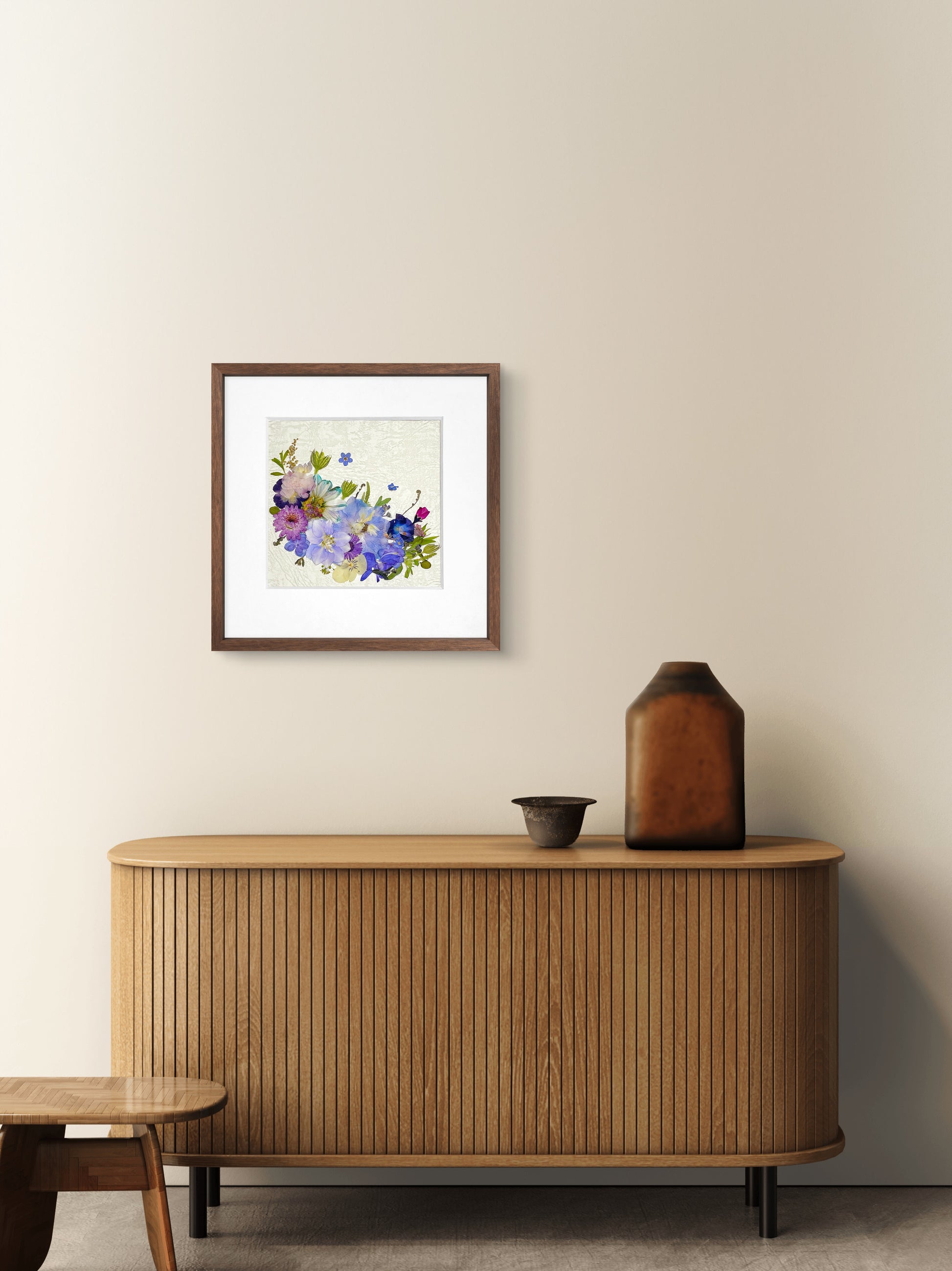 The artwork is covered with a clear acrylic board and sealed with aluminum backing to enhance its longevity and preserve its botanical beauty.