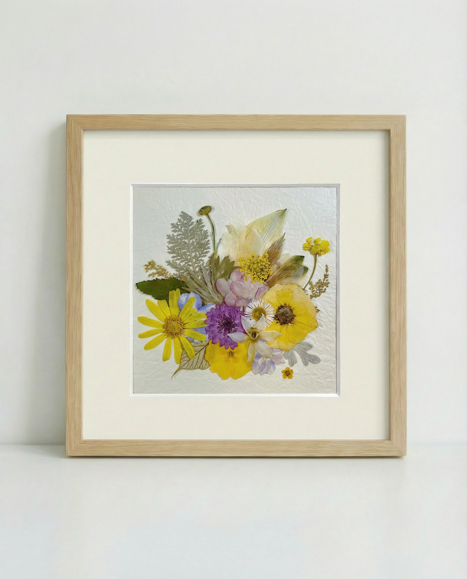 The artwork is covered with a clear acrylic board and sealed with aluminum backing to enhance its longevity and preserve its botanical beauty.