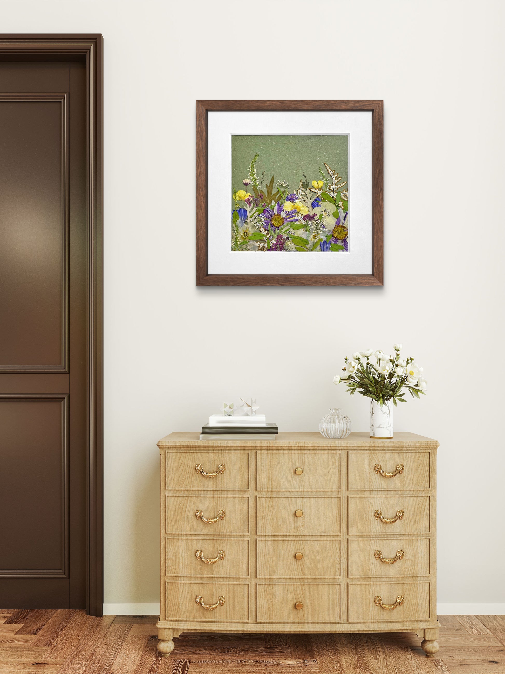 The artwork is covered with a clear acrylic board and sealed with aluminum backing to enhance its longevity and preserve its botanical beauty.