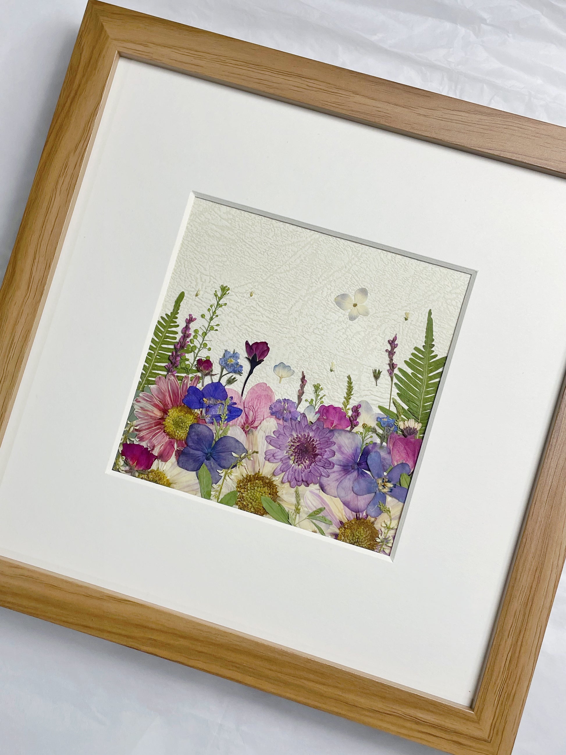 ▪ PRODUCT DETAILS: 10 x 10 inches pressed flowers frame art, suitable for table decoration. Our frames are crafted with our flower florists meticulously selecting the finest seasonal blooms. The material we use is 100% flowers and plants.