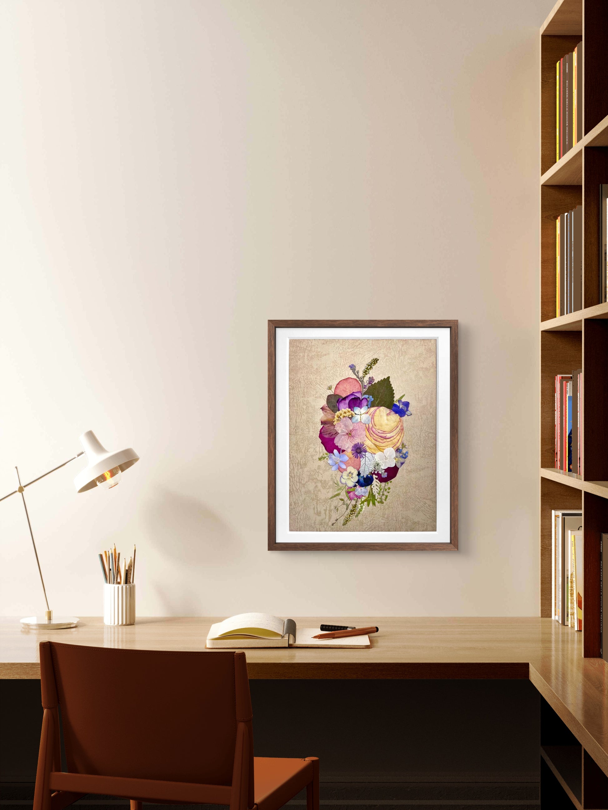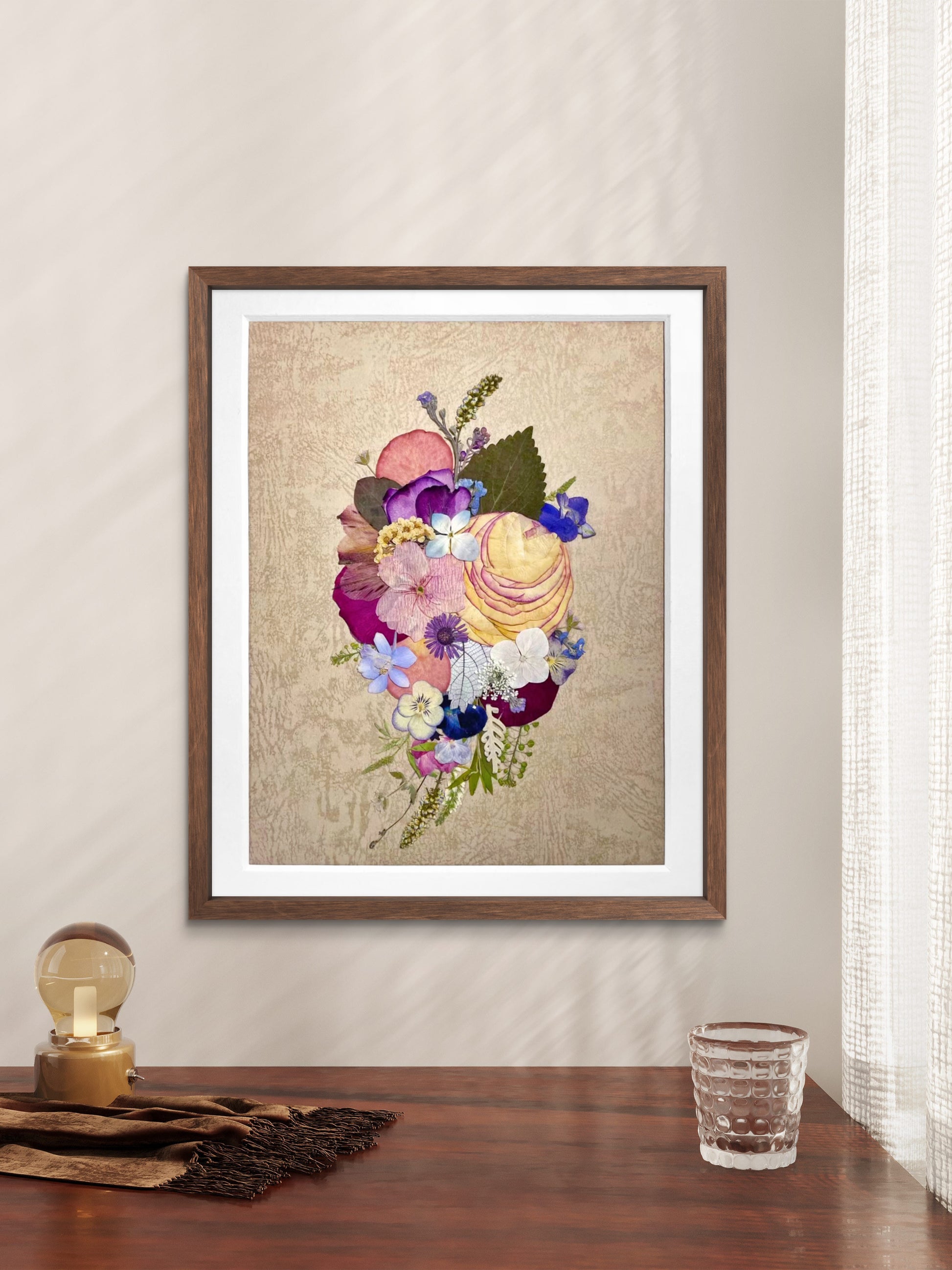The artwork is covered with a clear acrylic board and sealed with aluminum backing to enhance its longevity and preserve its botanical beauty.