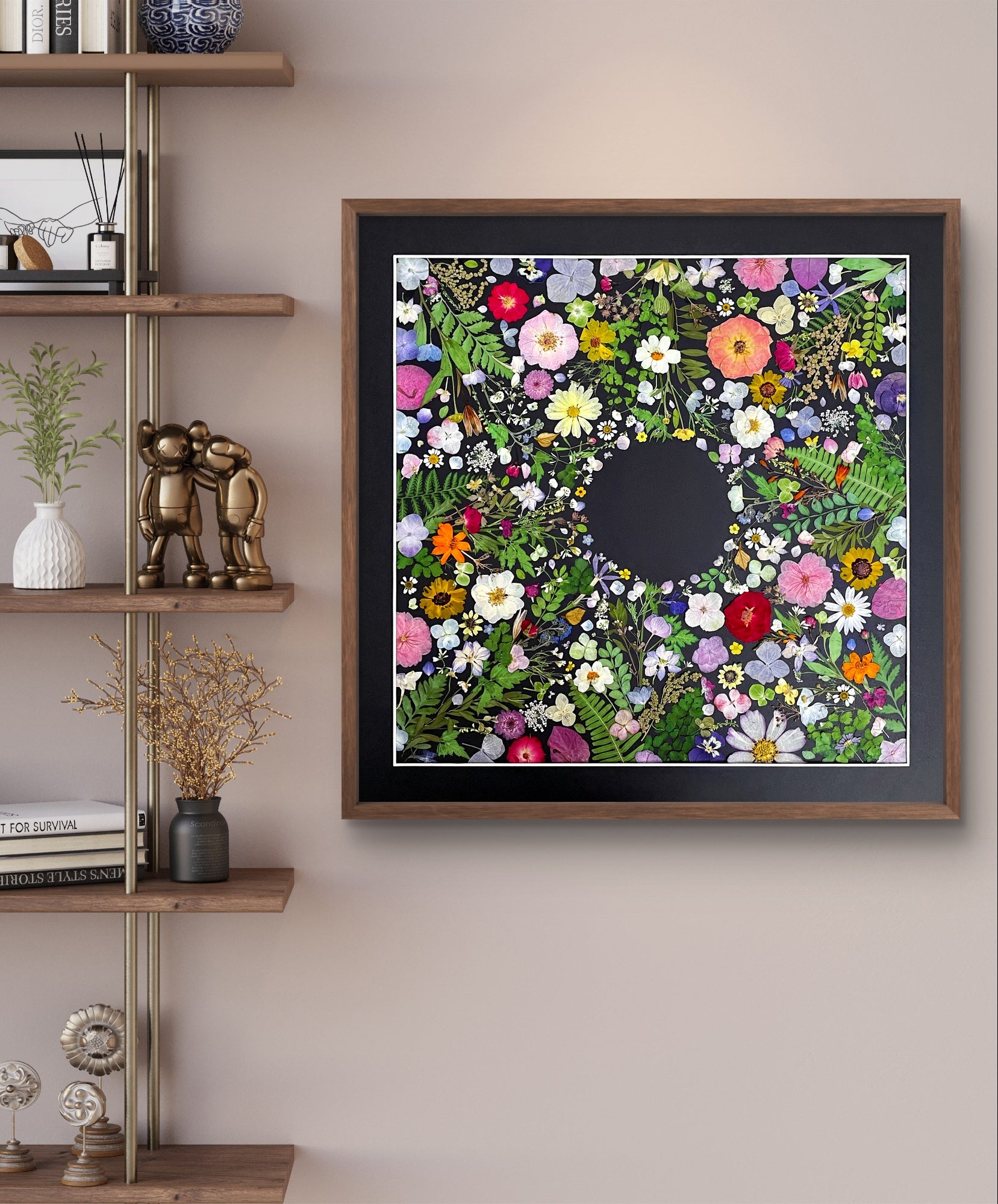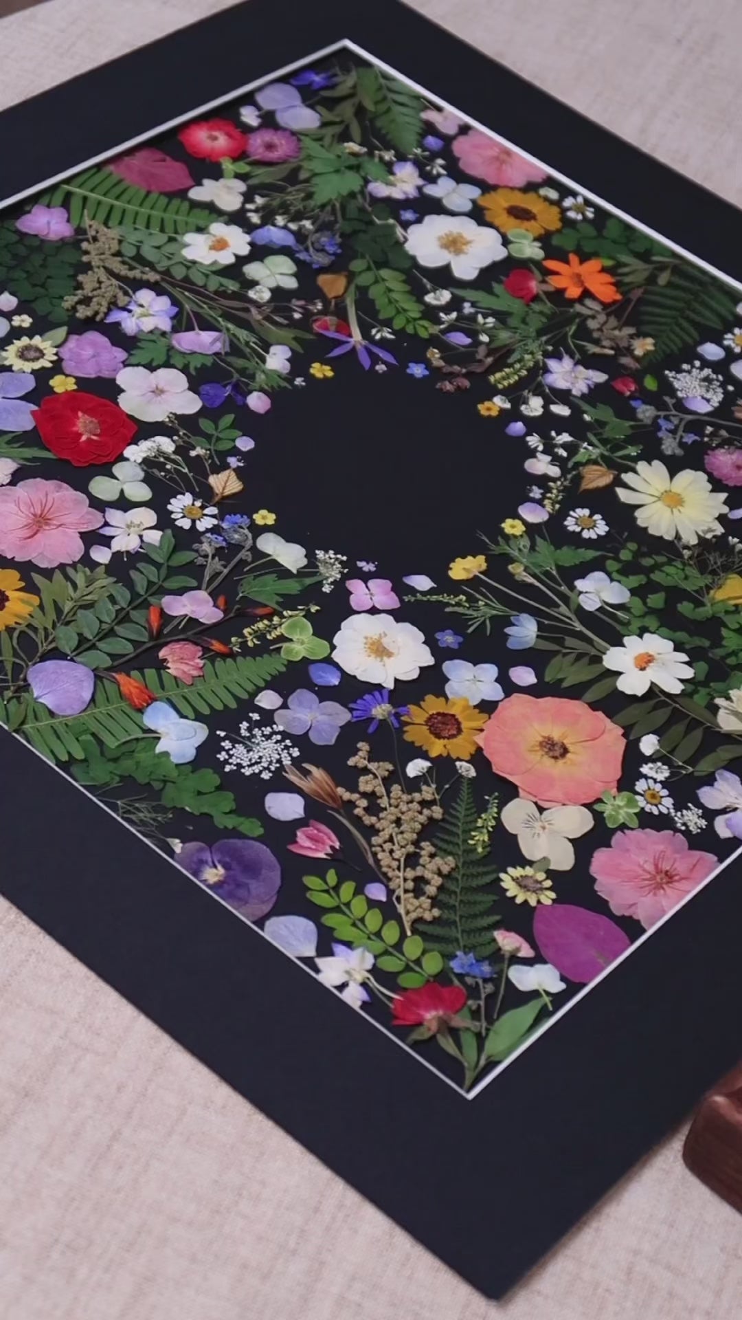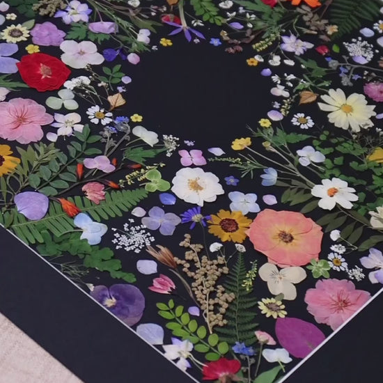 Our florist carefully arranges and glues dried flower petals onto background paper, creating a unique design. Each petal is selected from the finest seasonal blooms, meticulously chosen by our skilled florists.