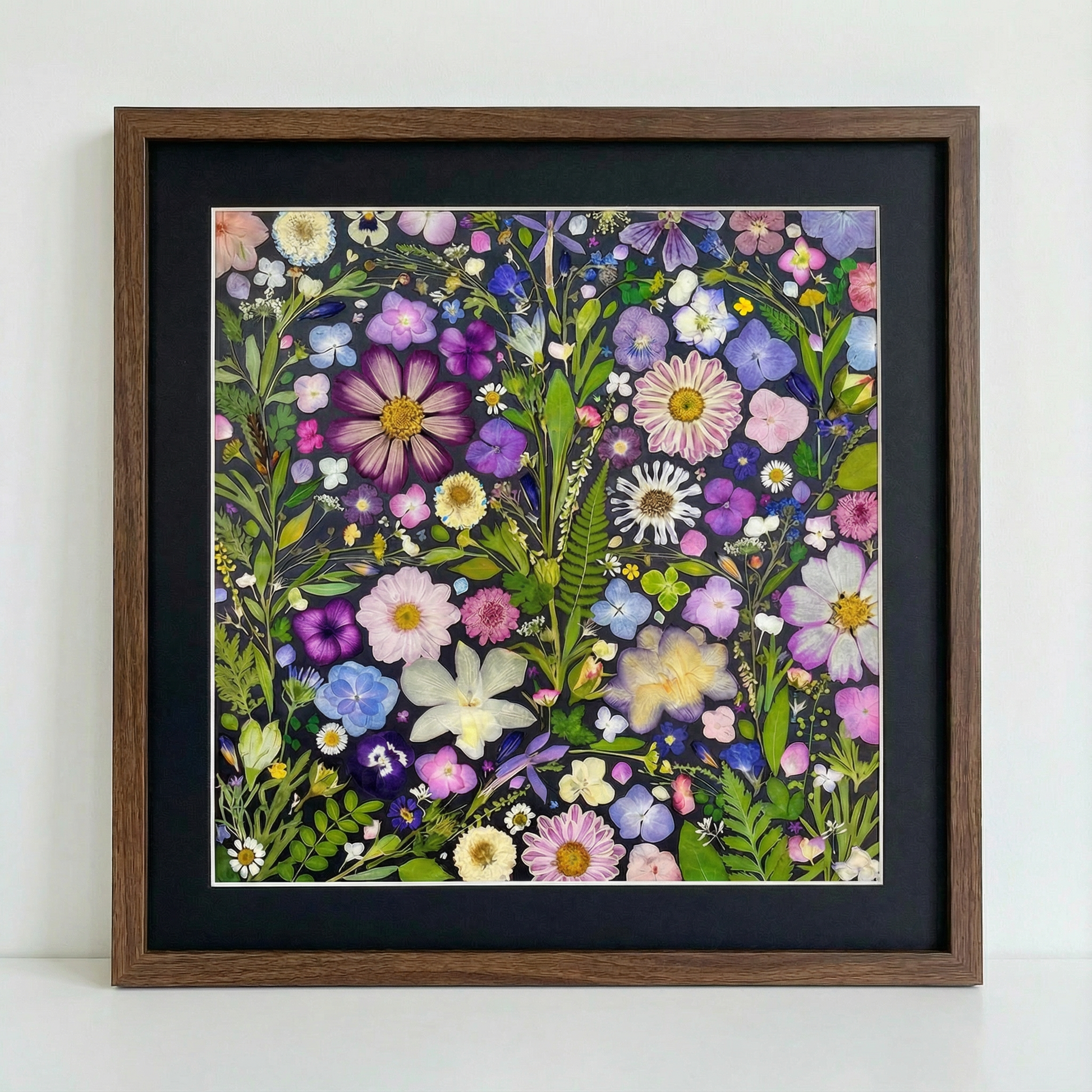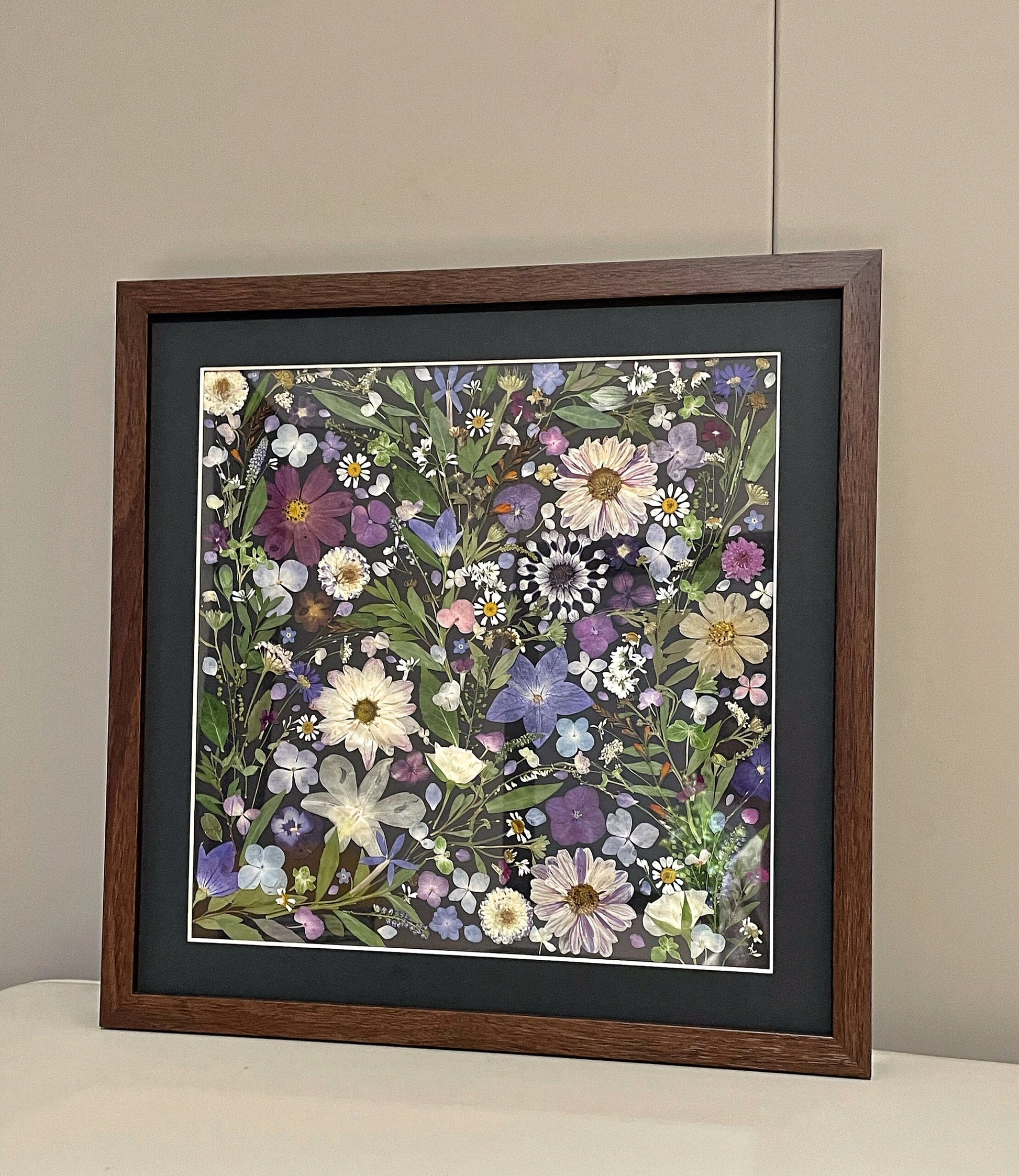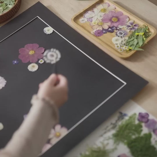 Our florist carefully arranges and glues dried flower petals onto background paper, creating a unique design. Each petal is selected from the finest seasonal blooms, meticulously chosen by our skilled florists.