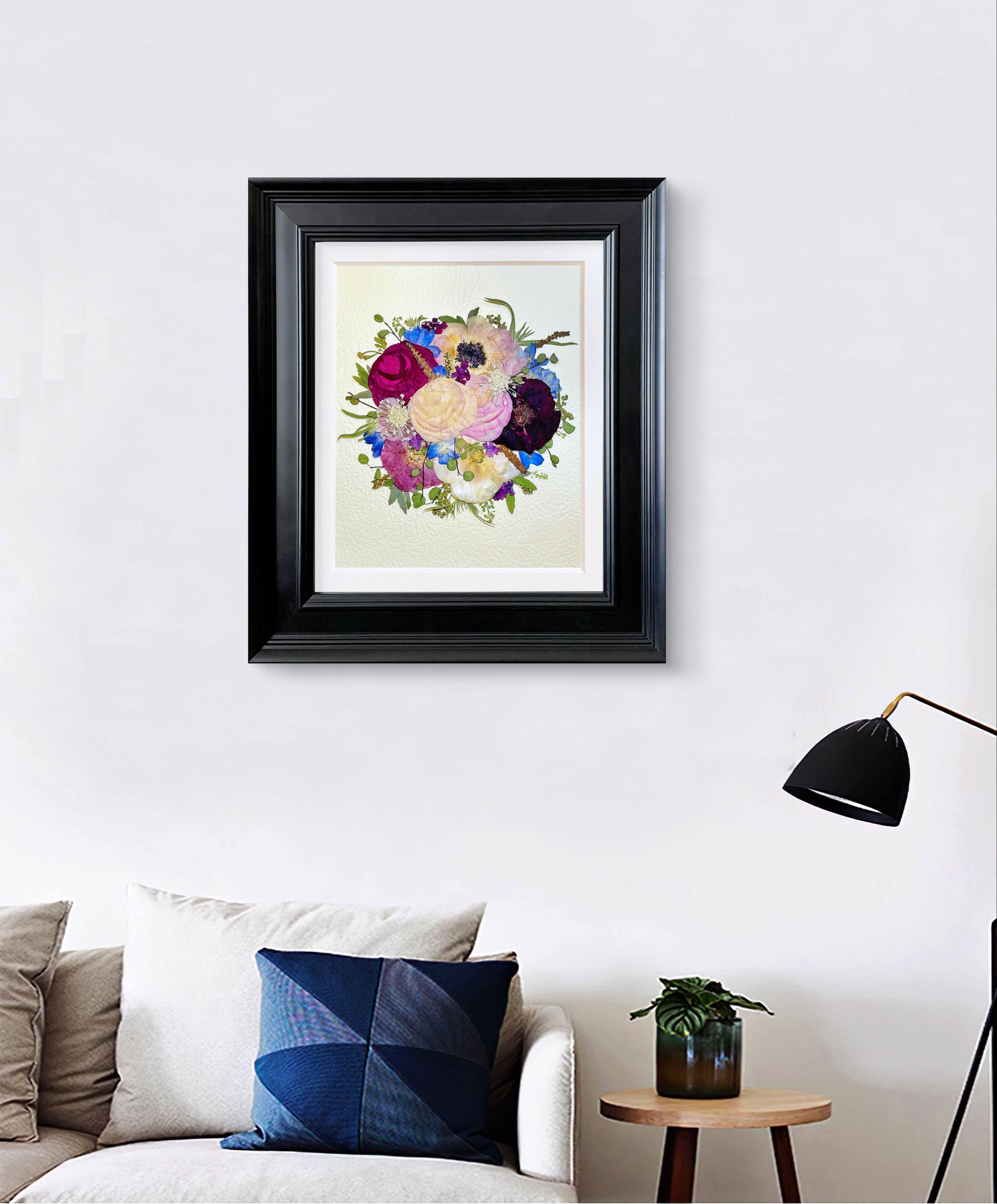 ▪ Product details: This exquisite piece features a blossom of roses meticulously crafted from individually cut and shaped flower petals, each delicately arranged by the designer. The vibrant petals are placed against a soothing white background, creating a harmonious contrast. The artwork is sealed beneath a clear acrylic cover, preserving the natural beauty of the petals while offering a sleek, modern finish. This handcrafted floral art adds a touch of nature and elegance to any space, making it a perfect gift or home décor statement.