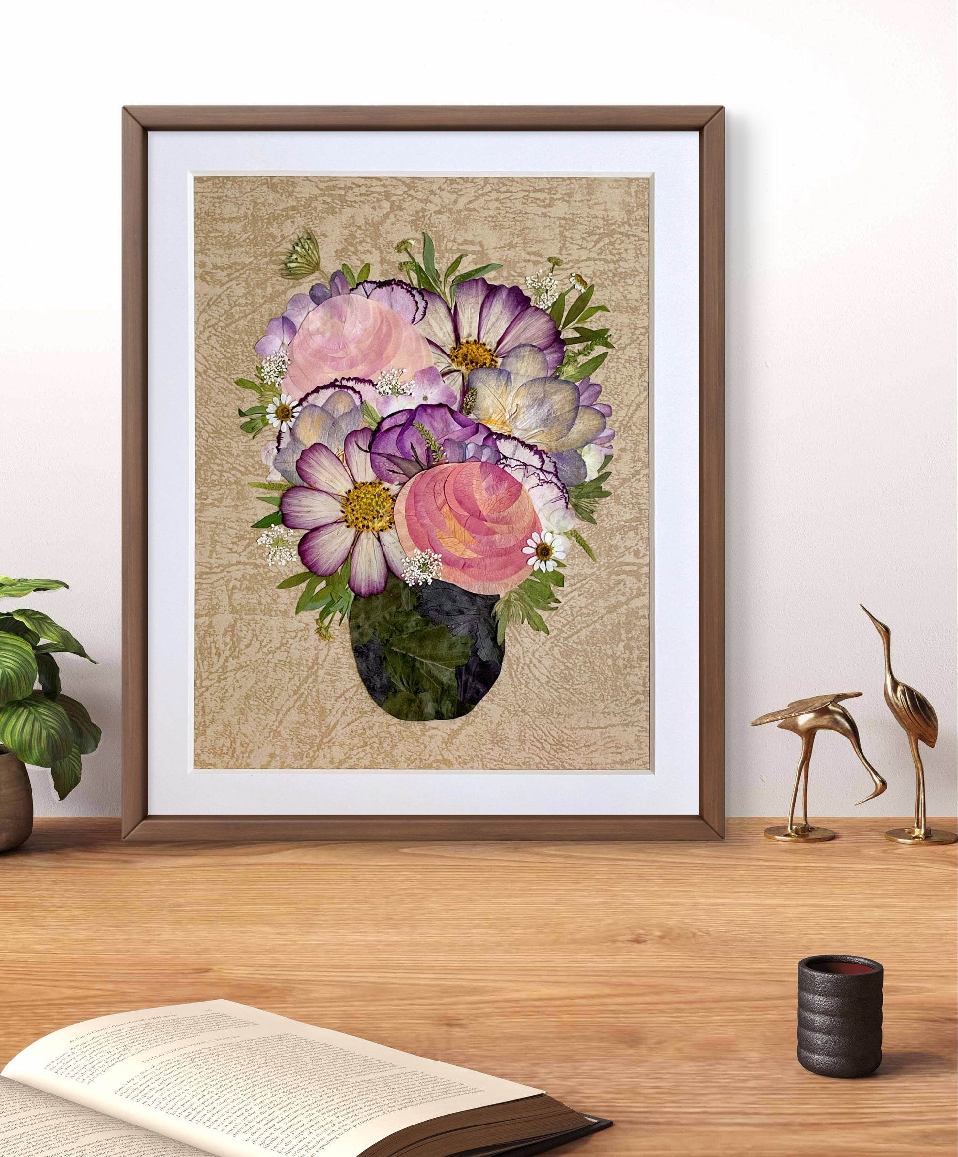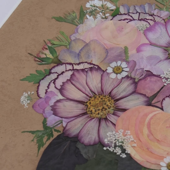 ▪ Product details: This is a small-sized pressed floral frame art. Our florist carefully arranges and glues dried flower petals onto background paper, creating a unique design. Each petal is sourced from the finest seasonal blooms, meticulously chosen and pressed by our skilled florists.